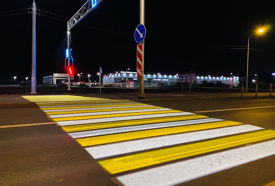 На региональных дорогах Оренбургской области впервые появились проекционные пешеходные переходы