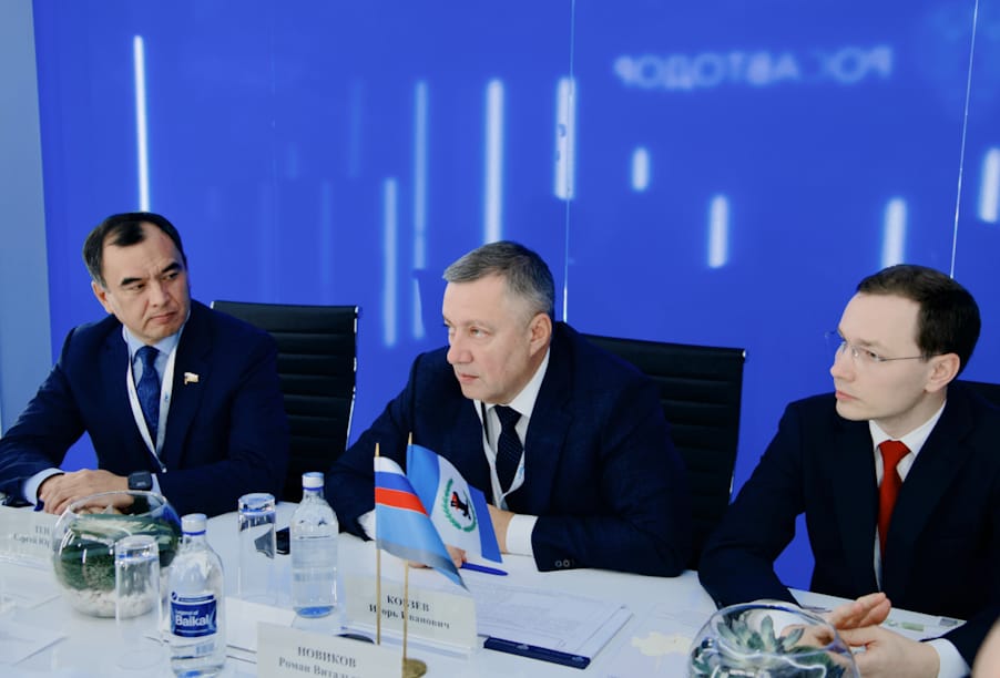 В рамках XIX Международного форума и выставки «Транспорт России», который проходит в столичном Гостином Дворе, состоялась рабочая встреча руководителя Федерального дорожного агентства Романа Новикова и губернатора Иркутской области Игоря Кобзева. В мероприятии также принял участие первый заместитель председателя Комитета по вопросам собственности, земельным и имущественным отношениям Государственной Думы Федерального Собрания Российской Федерации Сергей Тен.