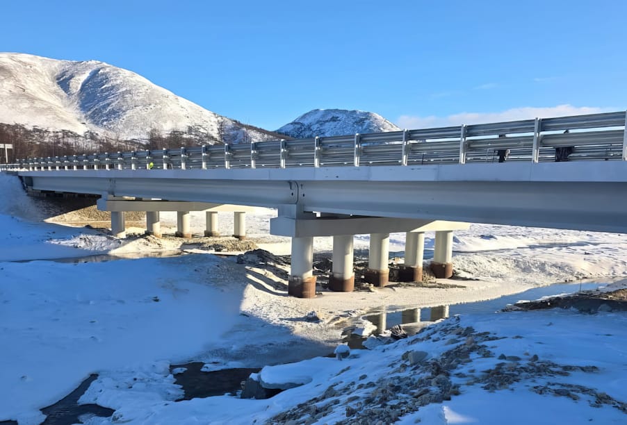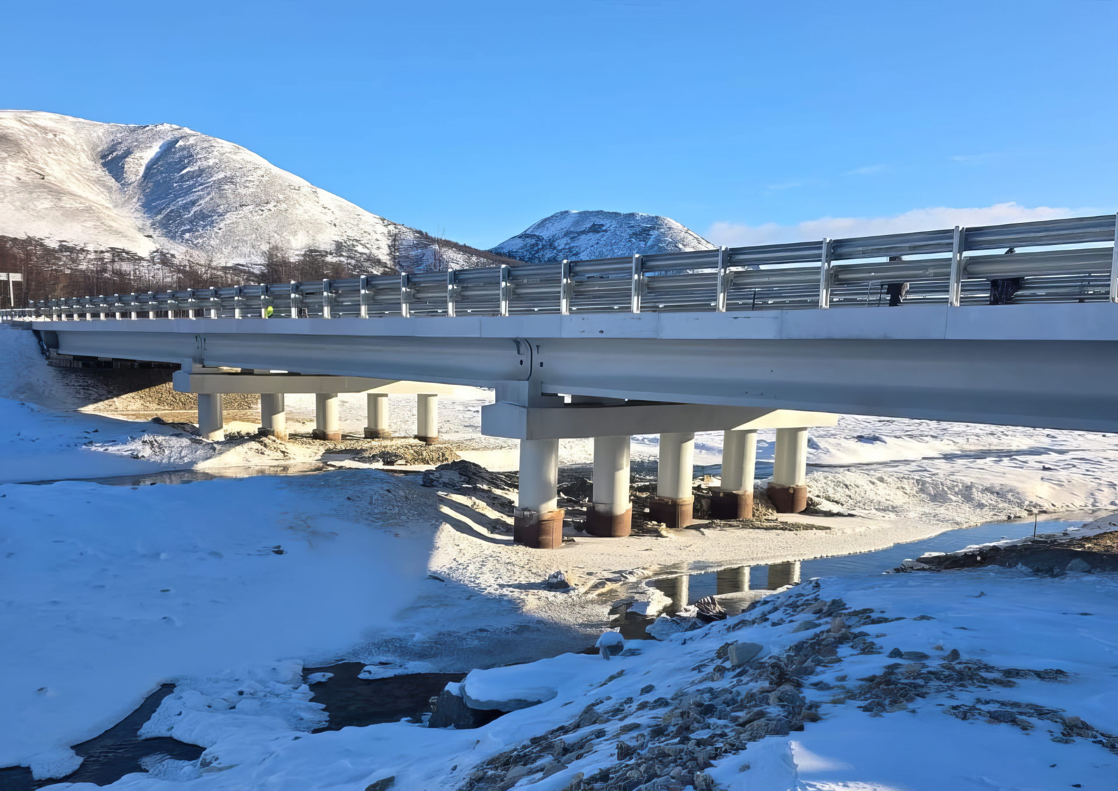 В текущем году благодаря национальному проекту «Инфраструктура для жизни» в Магаданской области завершены работы по строительству мостового перехода через реку Аган протяженностью 59,2 пог. м.