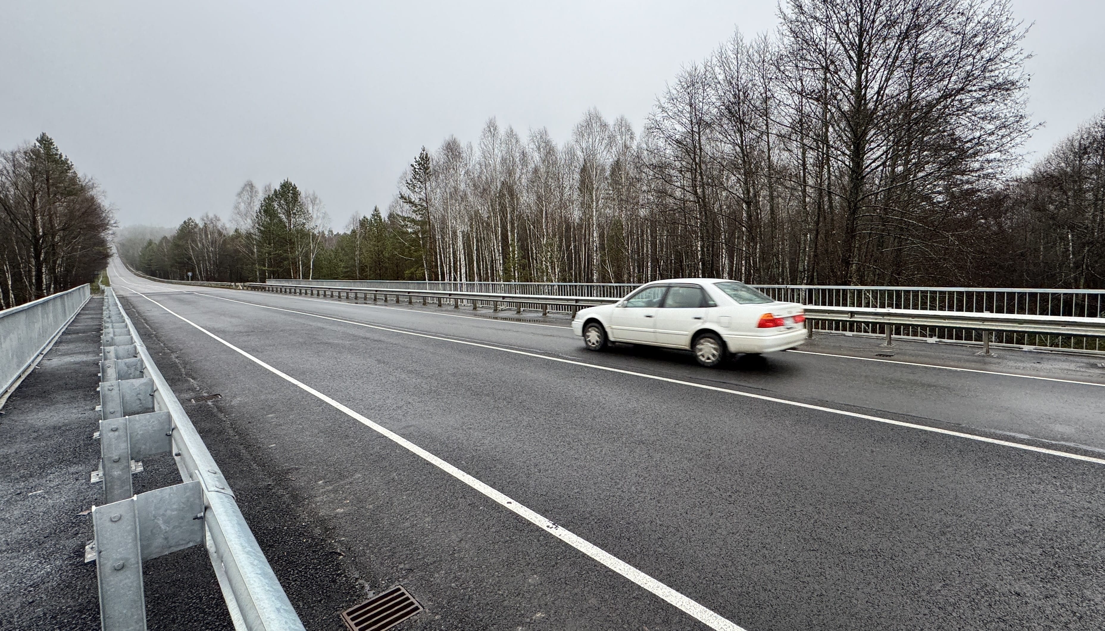 Ремонтные работы начались в прошлом году — дорожники провели усиление основания методом холодной регенерации. Технология используется на объектах опорной сети, чтобы привести их к нормативной нагрузке — 11,5 т на ось. Метод не только позволяет значительно повысить несущую способность дороги, но и обеспечить долговечность покрытия.
