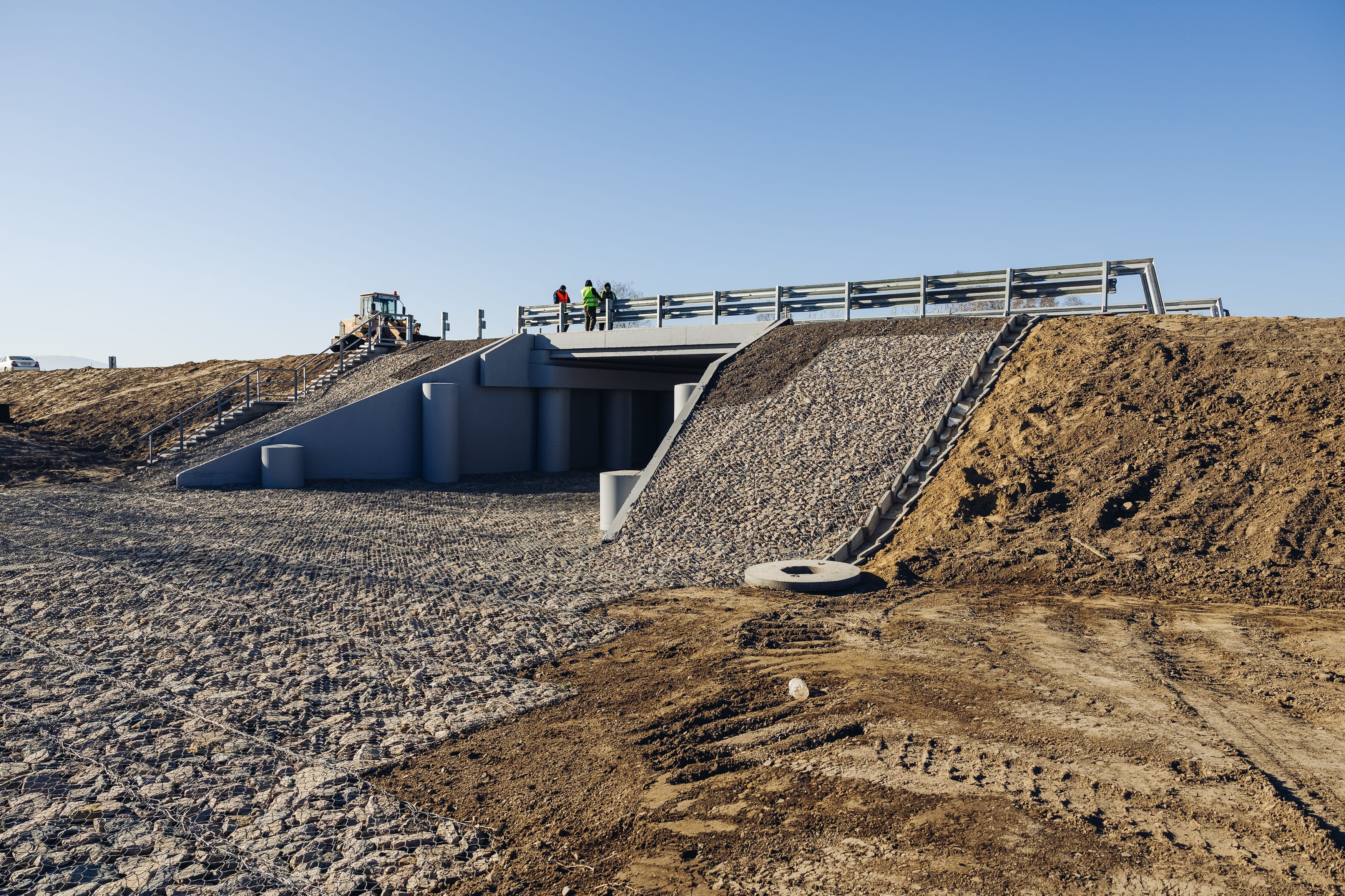 На сегодняшний день на объекте выполняют устройство земляного полотна, щебеночно-песчаной смеси и водопропускных труб.