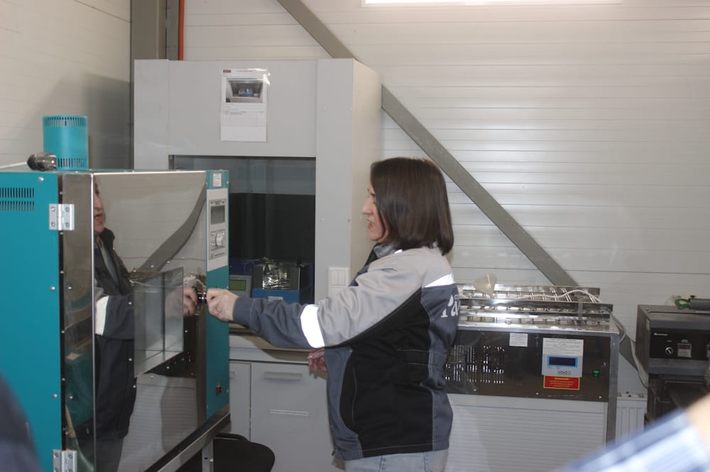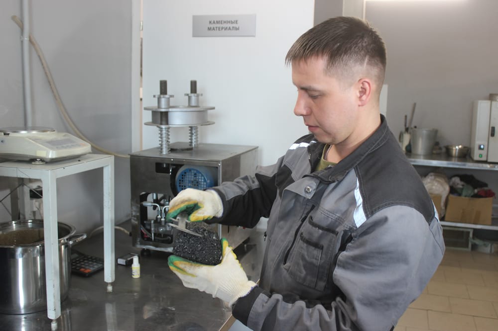 «Все поступающие к нам материалы проходят входной контроль, и на основании этого мы делаем состав, который соответствует ГОСТ, и в дальнейшем от него при производстве асфальтов отступать не должны. При изготовлении горячих смесей мы проверяем на соответствие ГОСТ каждую партию выходящего из асфальтобетонной установки приготовленного материала. Кроме того, с этого года обновился ГОСТ на полимерные битумные вяжущие, повышение их качества. Мы как раз занимаемся производством этого материала на нашей площадке. Поэтому у нас работы много. И если завод в разгар дорожного сезона начинает работать 24 часа в сутки, то и лаборатория трудится круглосуточно», — пояснила начальник лаборатории Любовь Крайнова.